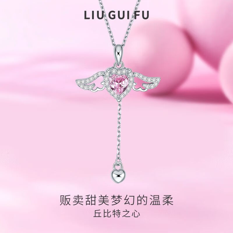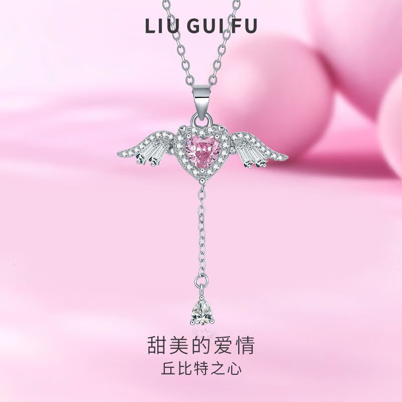 六桂福珠宝S925银镶锆石丘比特之心甜美超仙项链送女友礼物新年 丘比特之心项链附