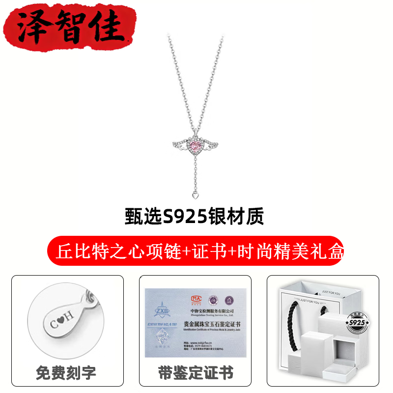 泽智佳999项链丘比特之心足银锁骨链轻奢小众送闺蜜女友520礼物 丘比特之心项链+礼盒-