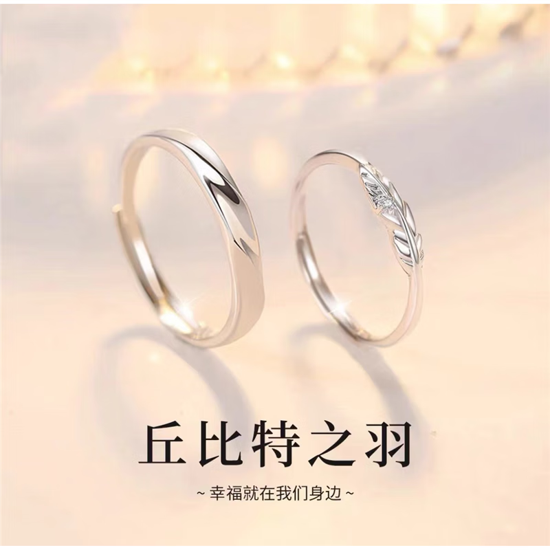 周家同款大福周S999纯银戒指情侣款一对可调节刻字纪念日七夕情人节礼物 丘比特之羽一对可调节可刻字