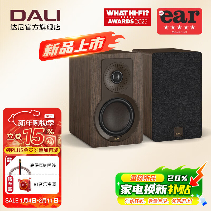 达尼(DALI) KUPID丘比特音响丹麦家用书架hifi高保真无源全彩音箱礼物 胡桃棕色
