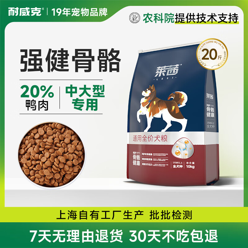 耐威克狗粮鸭肉梨肉松成犬幼犬中大型犬金毛泰迪贵宾比熊柯基宠物犬粮 【骨骼健康丨鸭肉+牛肉】·20斤