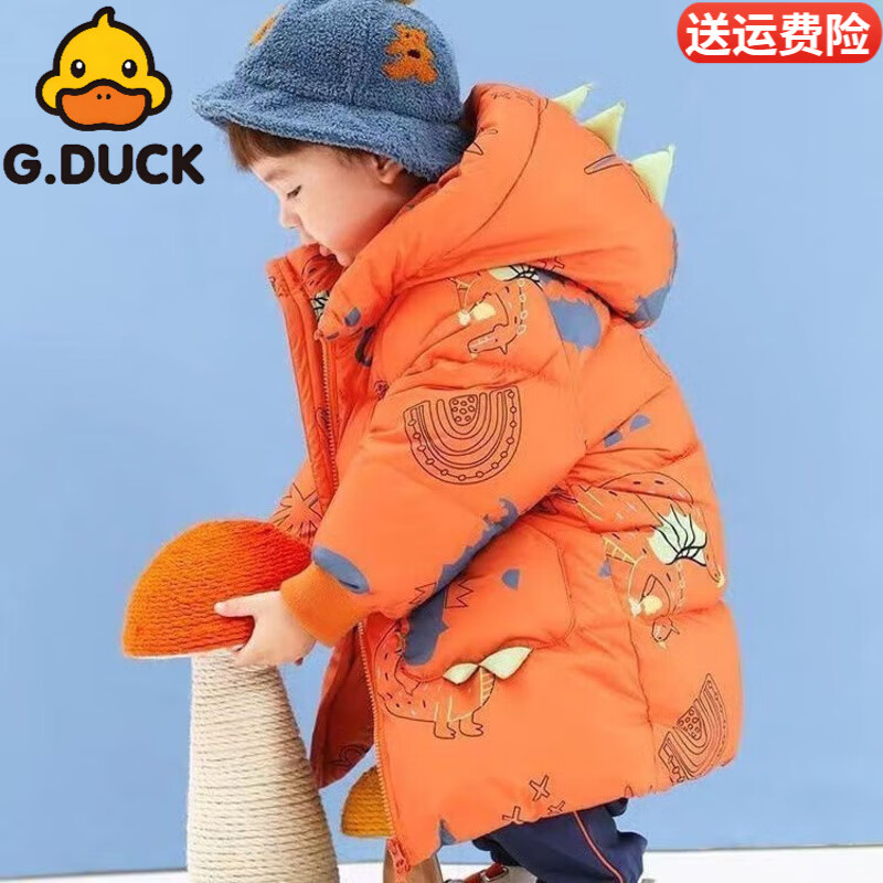 G.duck小黄鸭儿童羽绒服男童宝宝中长款洋气冬季加厚中小童保暖恐龙外套 桔色 恐龙 100 建议100厘米