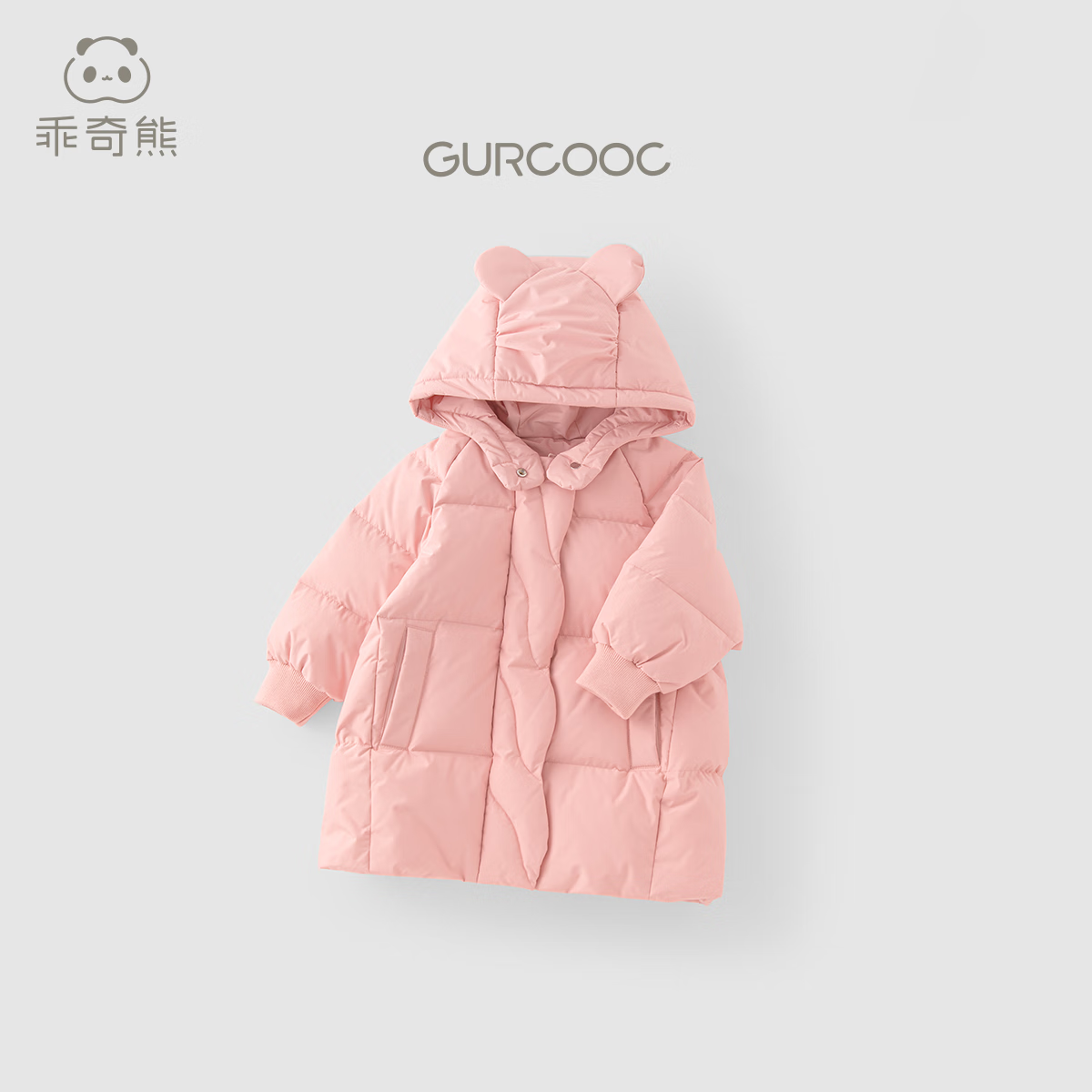 乖奇熊女童中长款羽绒服冬季女宝宝白鸭绒加厚保暖外套婴幼外出甜美衣服 粉色 100