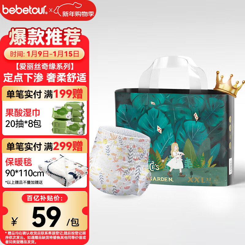 bebetour爱丽丝奇缘拉拉裤 XXL32片(15kg以上)夜用尿不湿奢柔舒适定点下渗