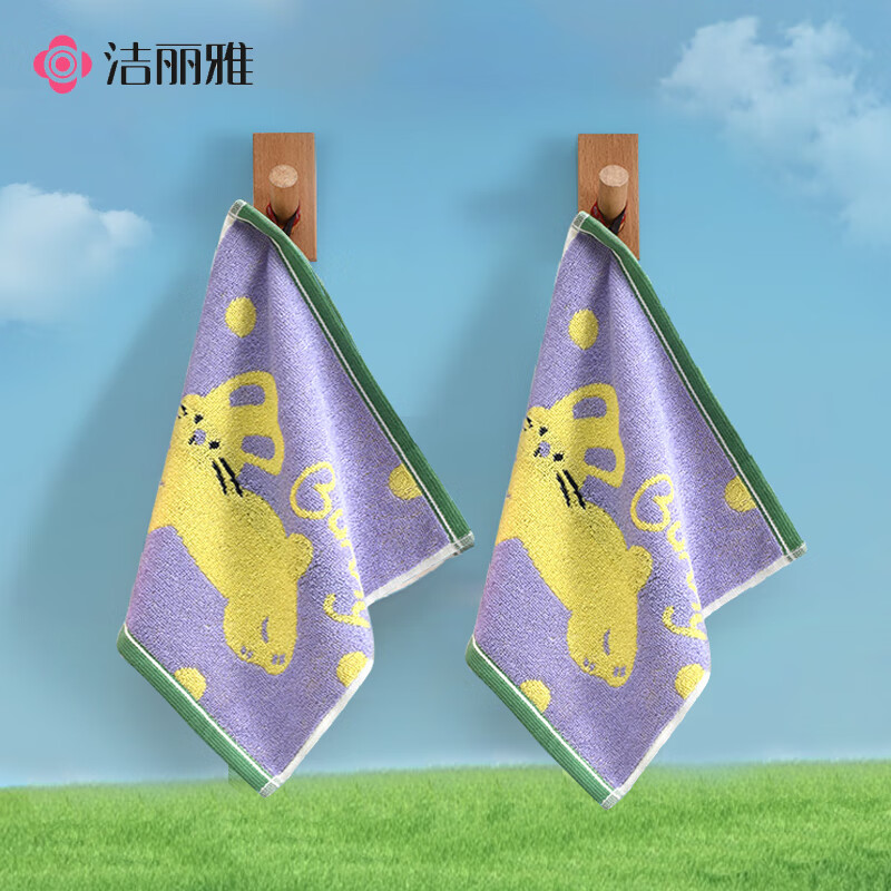 洁丽雅(grace) 纯棉儿童方巾全棉可爱卡通小毛巾洗脸方巾手帕擦手巾带挂绳 A类纯棉【紫色25*25cm】 2条 25g