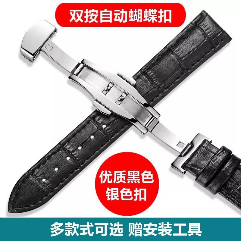岚立仕皮表带手表带男真皮表链女自动扣蝴蝶扣手链皮带配件小牛皮 黑带[亮色蝴蝶] 表口12mm寛度
