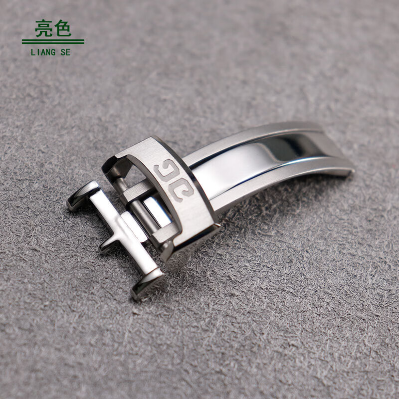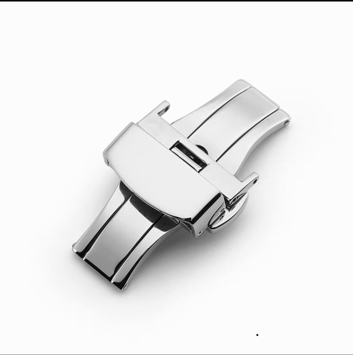 碧允表带蝴蝶扣男士表扣不锈钢双按自动折叠扣平口手表带扣配件 亮色蝴蝶扣//皮表带专用 10mm