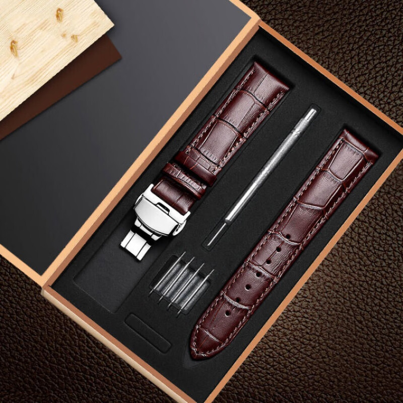 皮表带手表带男真皮表链女自动扣蝴蝶扣手链皮带配件小牛皮 棕牛皮..0..亮色自动筘 -*20mm+/