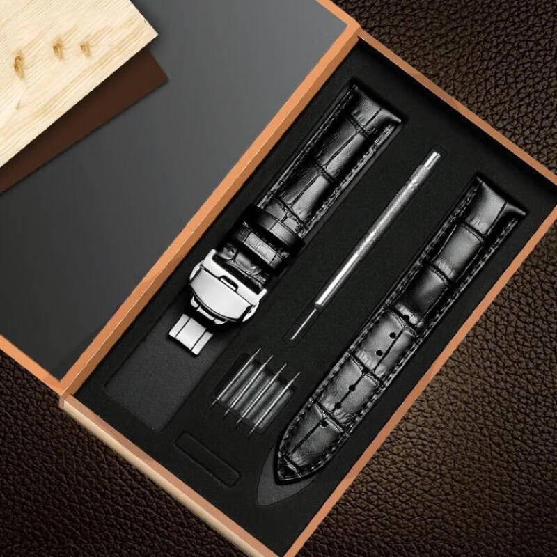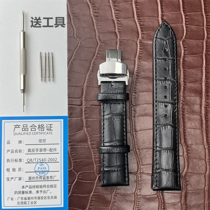 赞沃皮表带手表带男真皮表链女自动扣蝴蝶扣手链皮带配件小牛皮 黑牛 黑牛皮.0.亮色自动筘 -*12mm+/