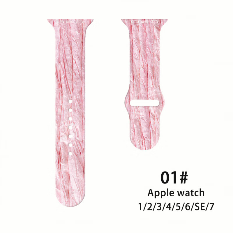 岚立仕适用苹果手表AppleWatch876543/SE皱纸纹/鱼鳞纹理亮色硅胶手表带 皱纸纹-01# 38/40/41MM