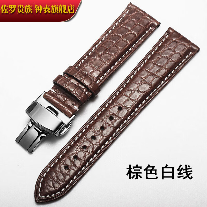 佐罗贵族适配浪琴手表表带亮色鳄鱼皮表带定制适配欧米茄 浪琴 天梭 依波路 劳力士手表男女 棕色白线 12mm