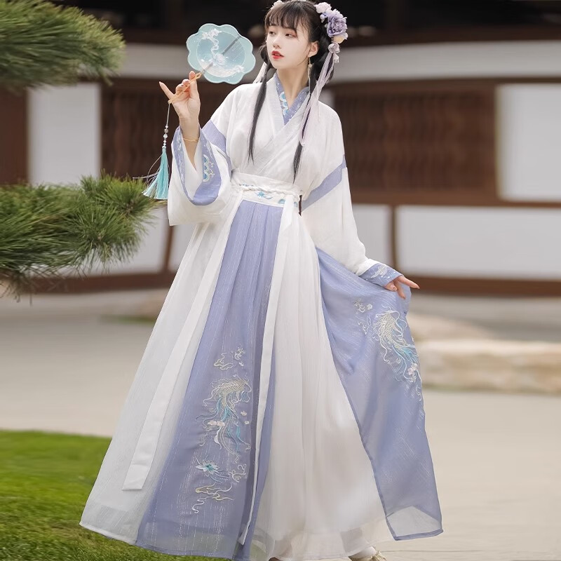 督型花蝶梦汉服成人女中国风晋制齐腰襦裙交领春秋魏晋风古装春秋仙气 黄鹤楼青烟色 S