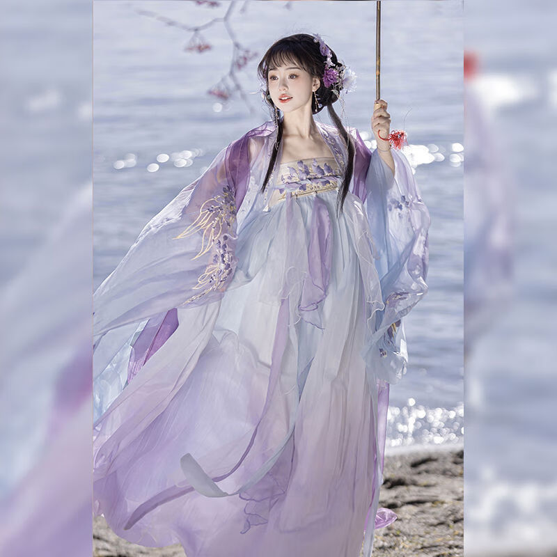 汉风原创【瓷碟美人】重工刺绣齐胸仙气诃子褶裙唐制汉服女夏季 【瓷碟美人】大袖衫+裙子+蝴蝶带 S