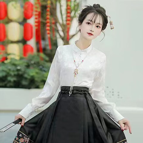 汉虞葵原创明制汉服女马面裙套装春季改良日常超仙气新中式马面裙全套 白色对襟上衣 L
