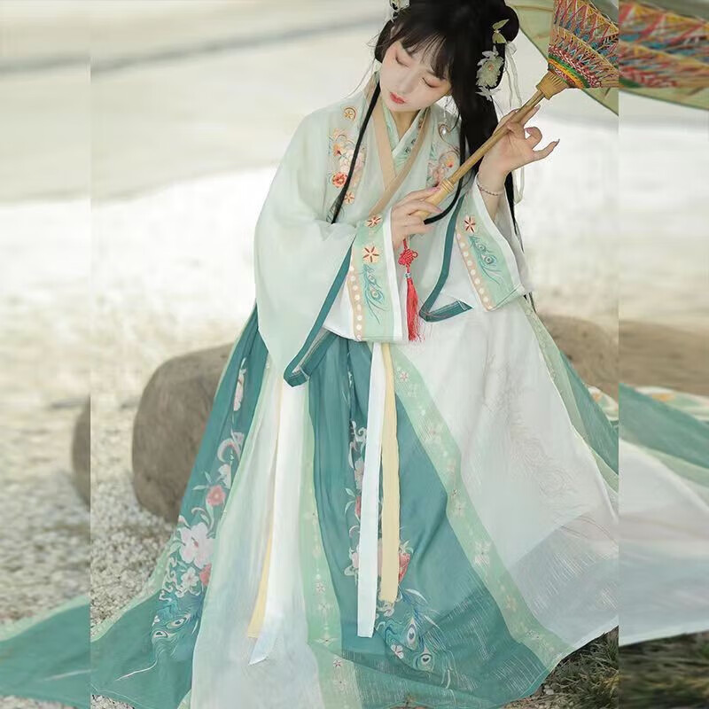 督型花蝶梦汉服成人女中国风晋制齐腰襦裙交领春秋魏晋风古装春秋仙气 花间领绿色 M