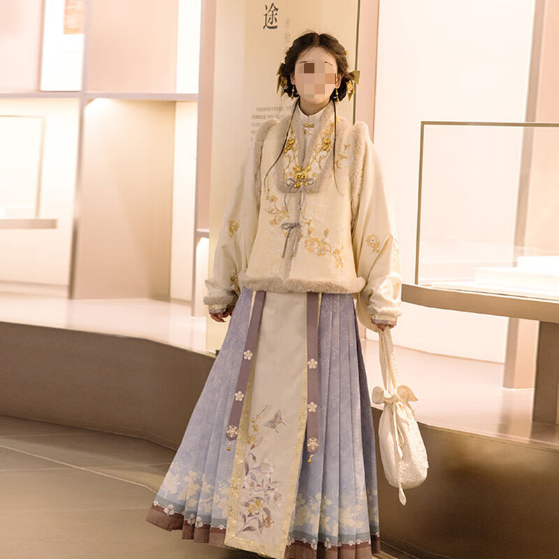卡辑明制汉服女秋冬款【莳绘金缮】刺绣加厚马面裙仙气古装日常全套 比甲+中衣+马面裙 S