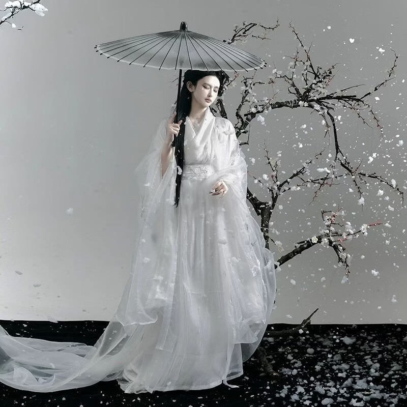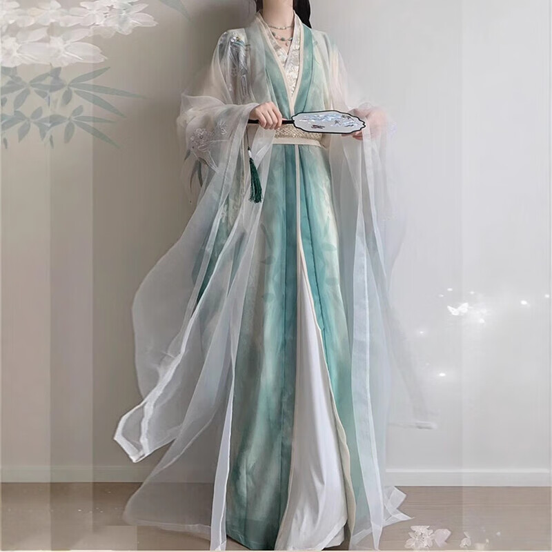 原创魏晋汉服超仙飘逸绣花大袖古装双层交领长衫直裾清冷仙气梅花 六件套 L