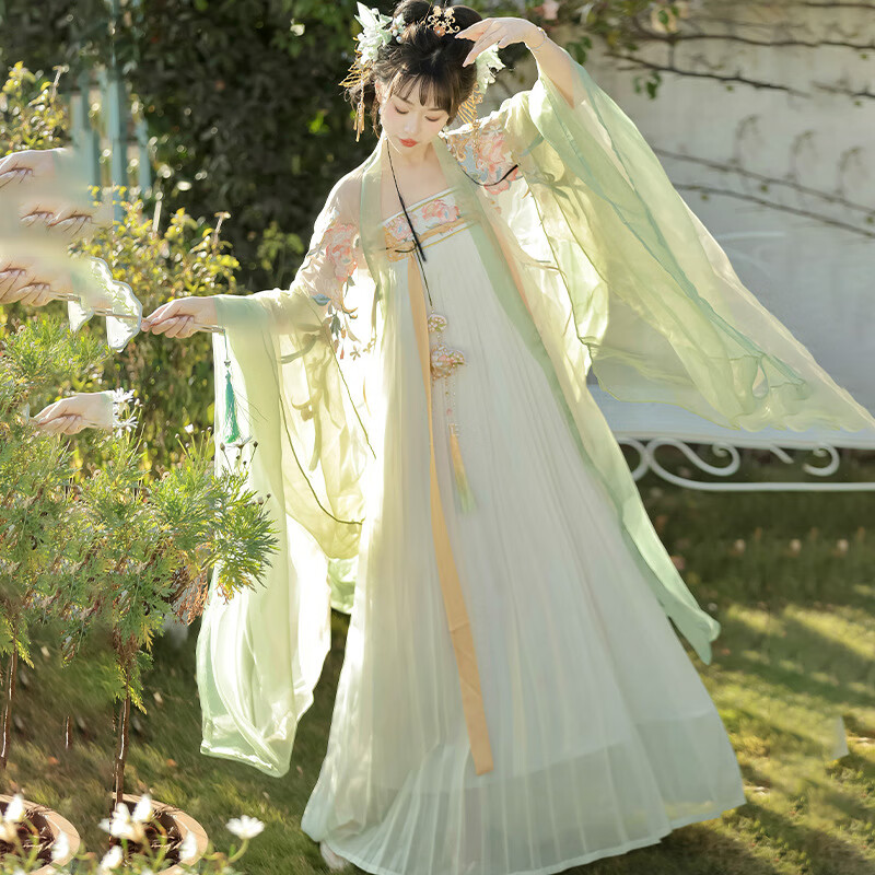 画枕眠【奉花行】唐制成人重工刺绣诃子裙齐胸汉服女改良仙气套装夏秋款 【奉花行】绿色全套 S