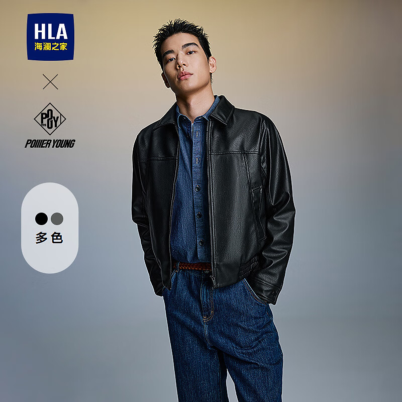 海澜之家(HLA)夹克男翻领时尚干练仿皮简约外套男秋季 黑色1D L 175/92A 推荐137~150斤