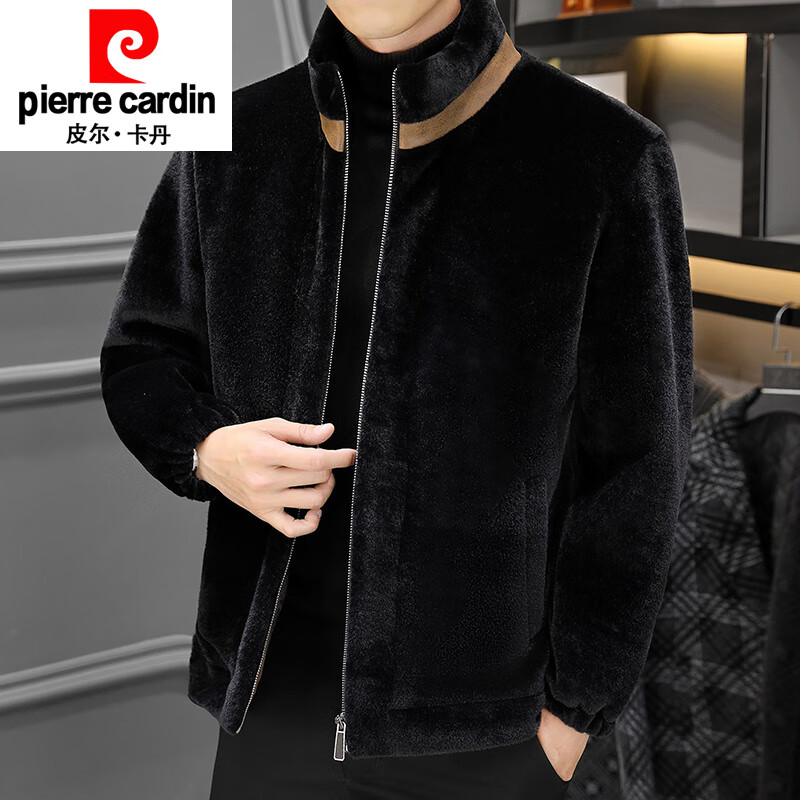 皮尔卡丹(pierre cardin)立领羊羔毛夹克男仿皮毛一体冬季韩版加厚颗粒羊剪绒二棉短款外套 黑色 M