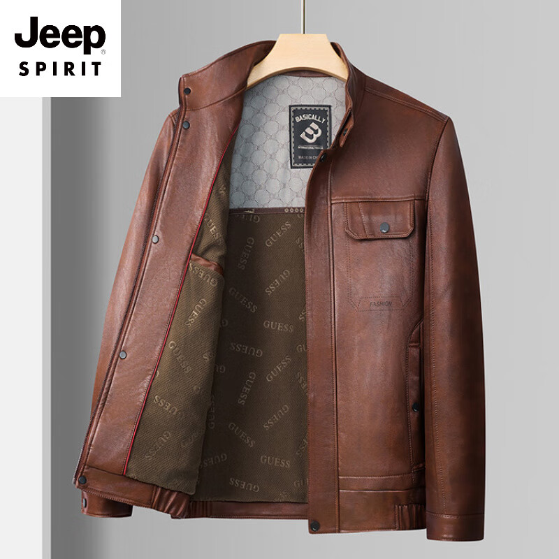 JEEP SPIRIT2025秋季新款立领皮衣男士仿皮立领中年爸爸装皮夹克外套 酒红色 M 170