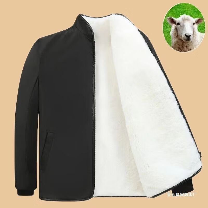 【高档轻奢】皮毛一体棉袄男秋冬新款仿毛仿皮上衣保暖外套 黑色外套白色内胆立领款 L 建议100-120 斤