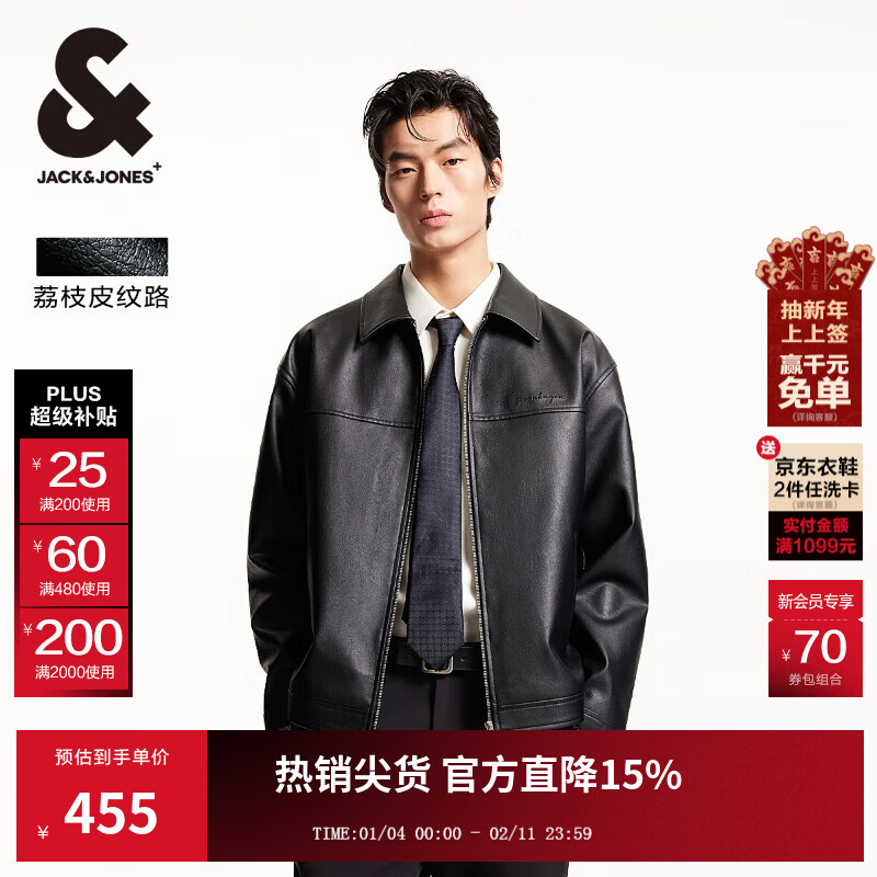 杰克·琼斯(JACK&JONES)25年仿皮衣外套男士春秋季皮夹克宽松PU行政夹克商务休闲外套男装 黑色E40 M (175)