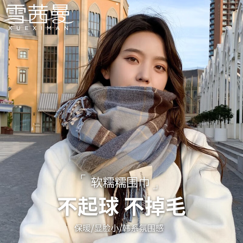 雪茜曼围巾女秋冬仿羊绒流苏格子围巾韩版加厚保暖披肩百搭围脖