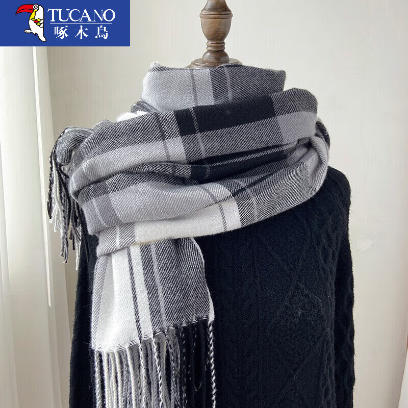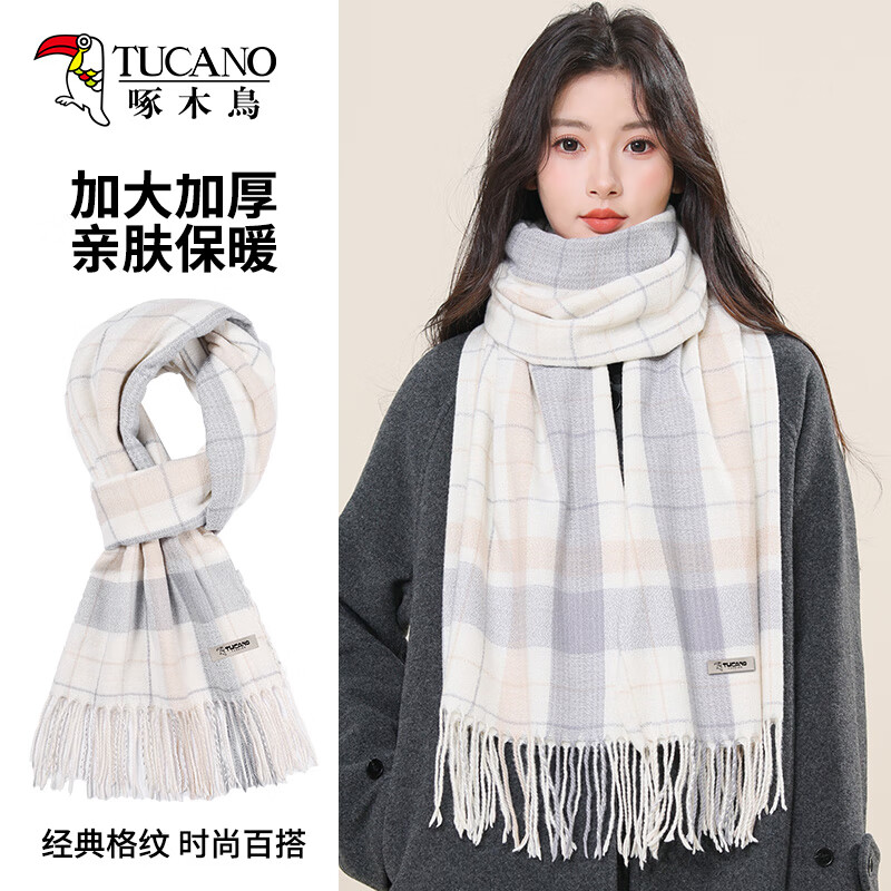 啄木鸟围巾女士冬季加大保暖披肩仿羊绒百搭韩版格子围脖生日礼物送女生