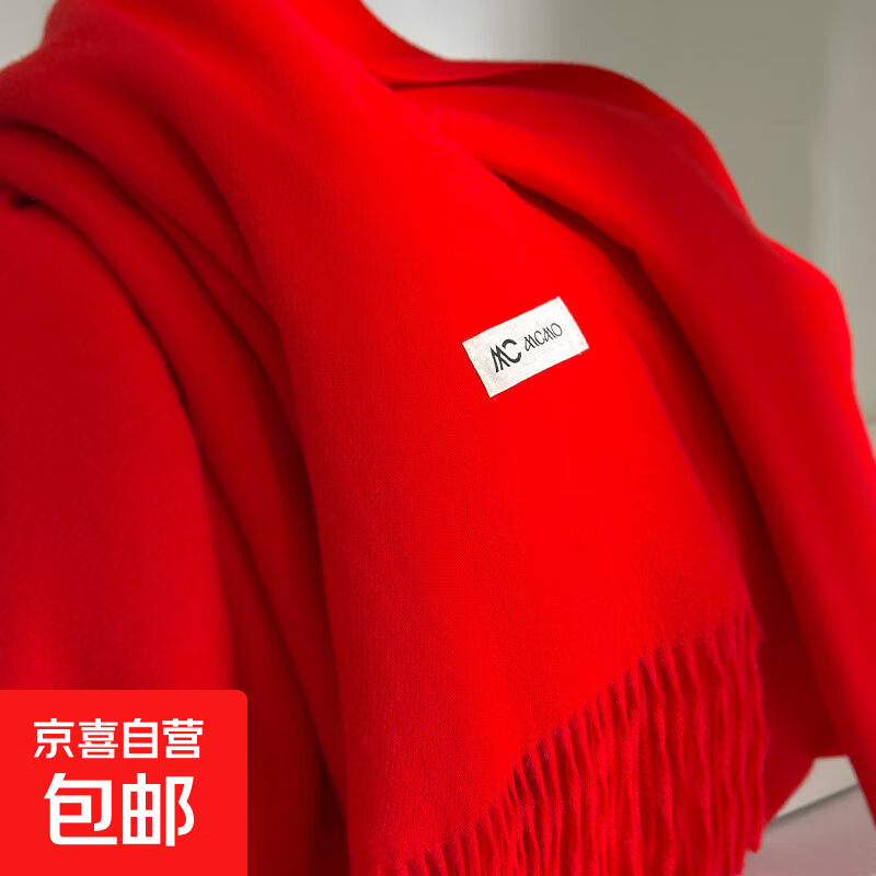 【万茜春晚同款】围巾女冬款网红披肩两用百搭加厚仿羊绒纯色围巾 红色 200克