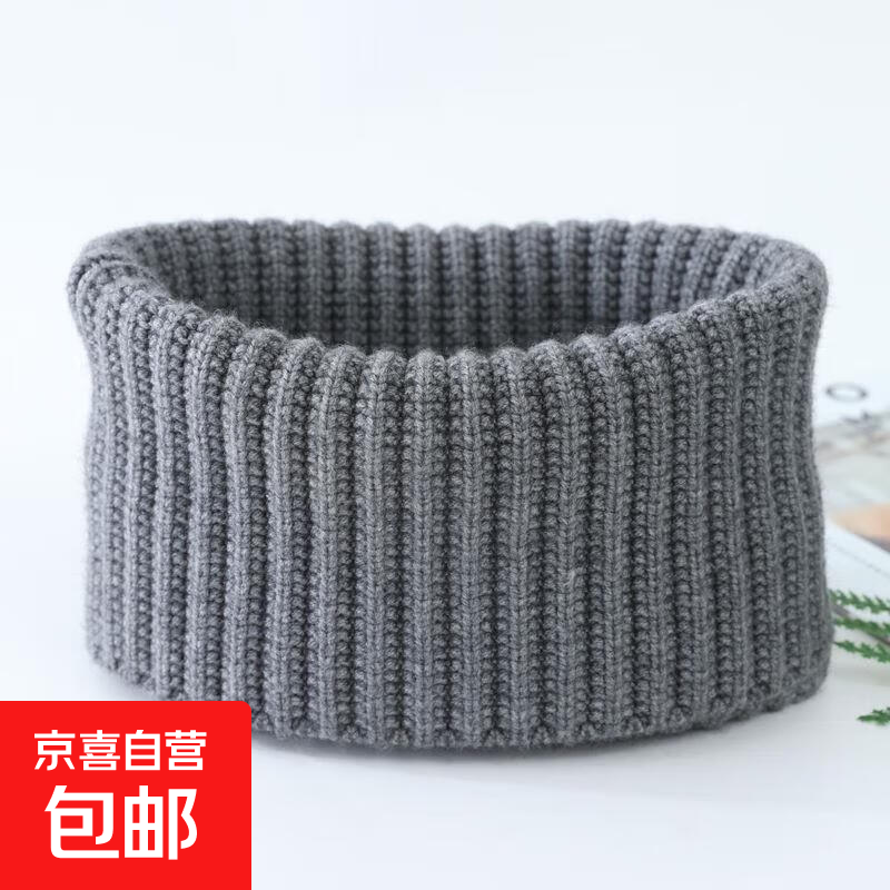 秋冬羊绒脖套男女颈椎假领加厚保暖羊毛线针织护脖子围巾围脖套头 仿羊绒针织脖套-灰色-1个