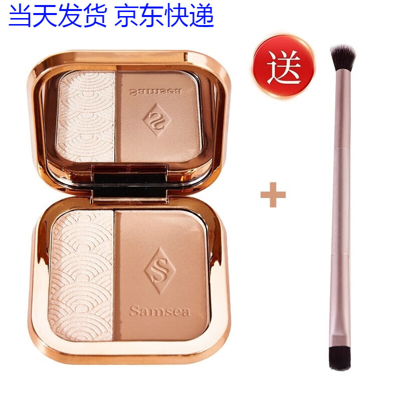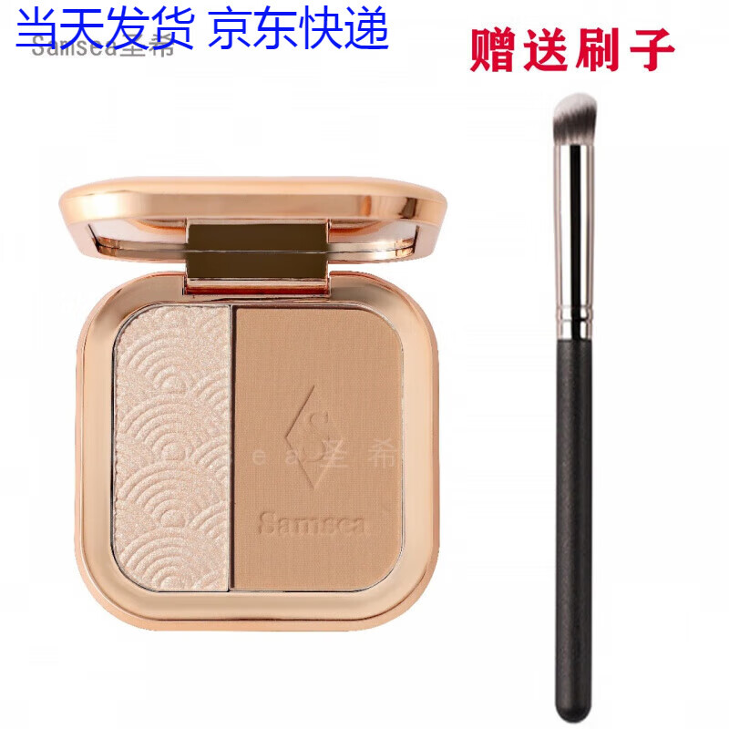 Samsea圣希(Samsea)双色高光修容粉饼鼻侧影脸部自然提亮细闪遮瑕哑光立体修容散粉 高光修容粉饼+双头粉刷