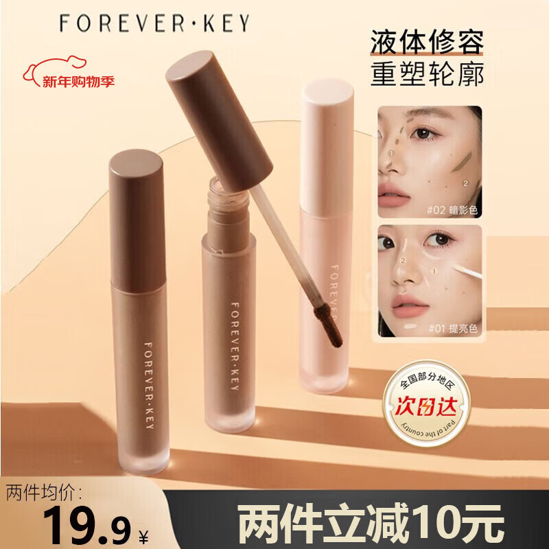 FOREVER·KEY液体修容棒鼻影阴影修容液高光侧影提亮液暗笔 01提亮色+02暗影色7g