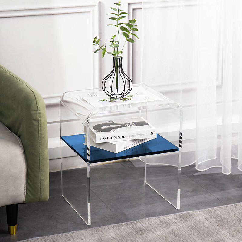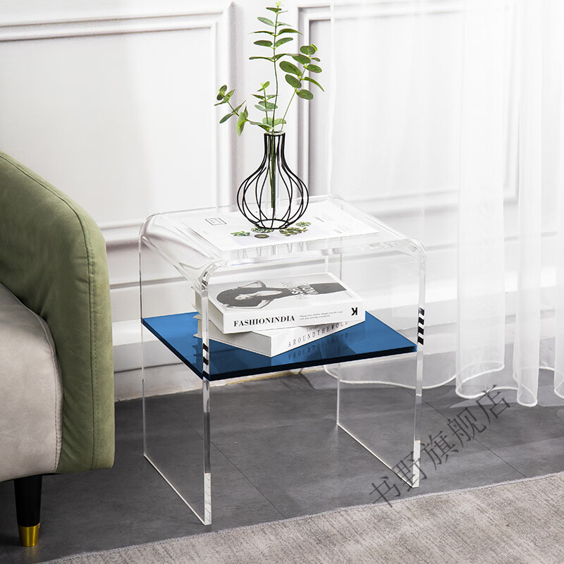 舒怡然亚克力角几卧室透明床头柜客厅沙发边几简约茶几家用置物架定制 透明拼克莱因蓝(375*375*430mm) 免安装_375x375x430mm