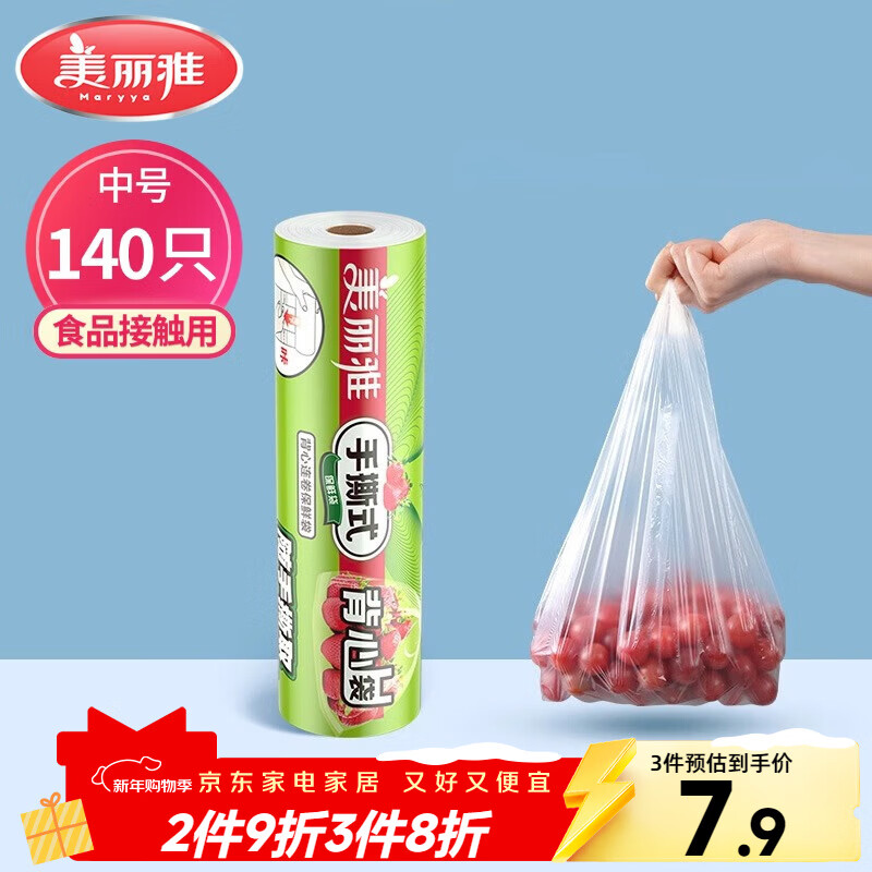 美丽雅 一次性保鲜袋背心式中号 食品级140只38*30cm冷藏分装塑料袋子