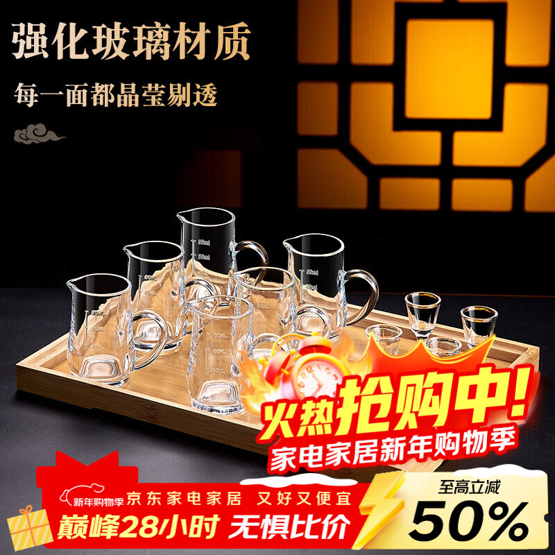 青苹果白酒杯分酒器一口杯高脚小酒杯刻度分酒壶玻璃套装 清风分酒器6壶6杯【强化加厚款】
