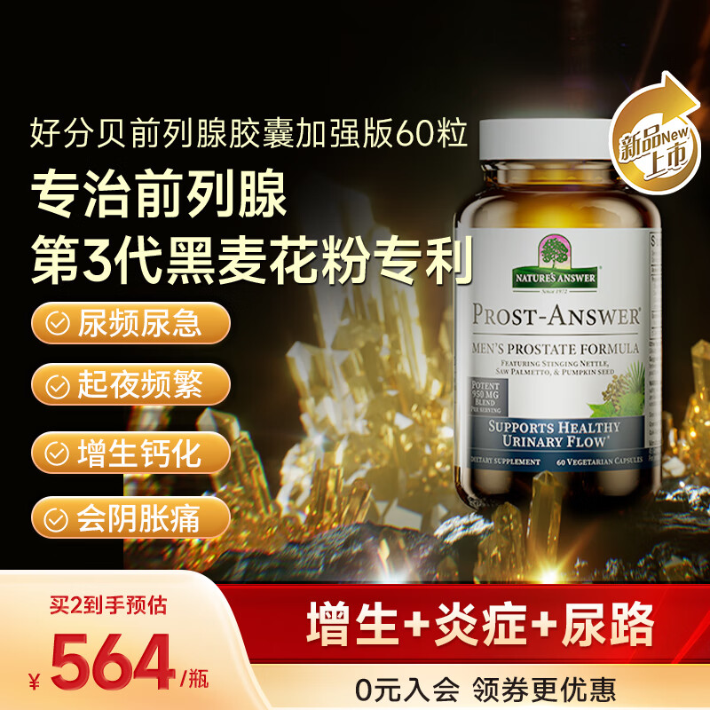 NATURE'S ANSWER SINCE 1972前列腺炎胶囊加强版黑麦花粉锯棕榈男士保健品尿频增生抗炎进口