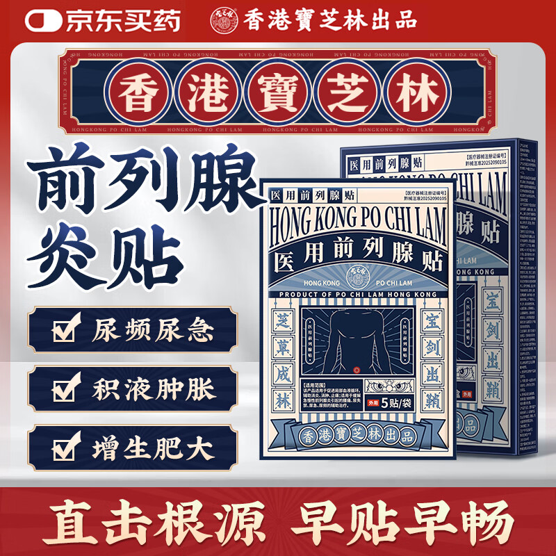 宝芝林香港 前列腺贴前列腺炎增生肥大尿频尿急尿不尽专用膏药贴 5贴/盒