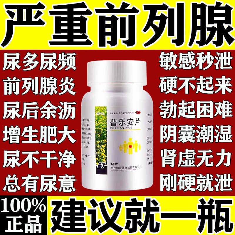 [保列通]普乐安片 0.57g*60片 1盒装 前列腺炎特新效期专用药尿频尿急尿不尽男科用药前列腺炎早泄阳痿增生肥大夜尿小便多 尿频尿急夜尿多