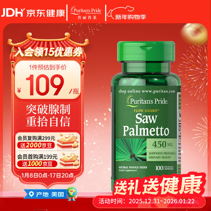 普丽普莱锯棕榈胶囊450mg*100粒 男士保健品脱发前列腺增生肥大