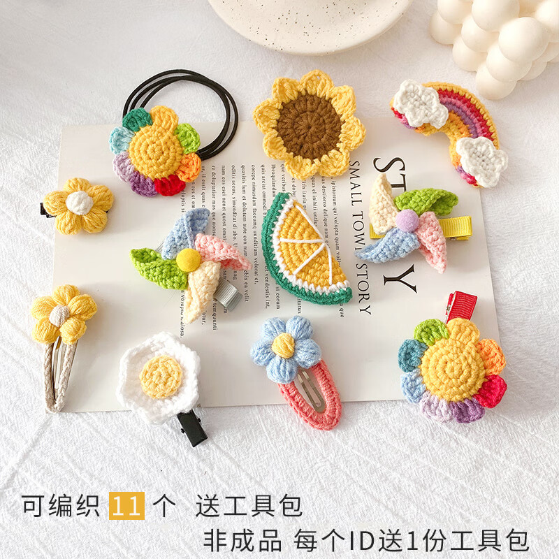 手工编织制作diy毛线钩针勾线打发时间解闷手工活在家发夹材料包 68#儿童系