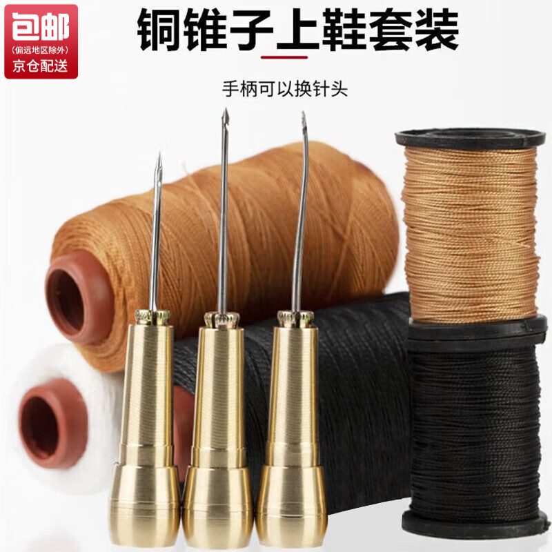 威尔基补鞋钩针修鞋锥子带钩针工具修鞋工具全套鞋底锥子针补鞋针线勾线 修鞋器【铜柄+3针+棕线】