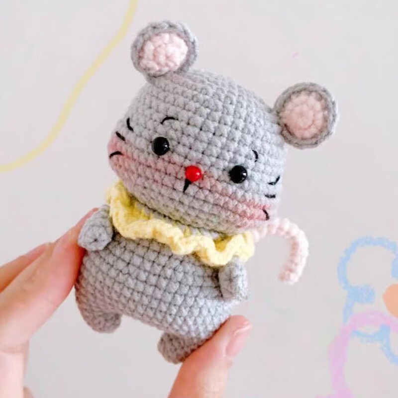 编织diy玩偶十二生肖手工钥匙扣挂件勾线 线动物玩偶牛奶棉钩针编 小老鼠