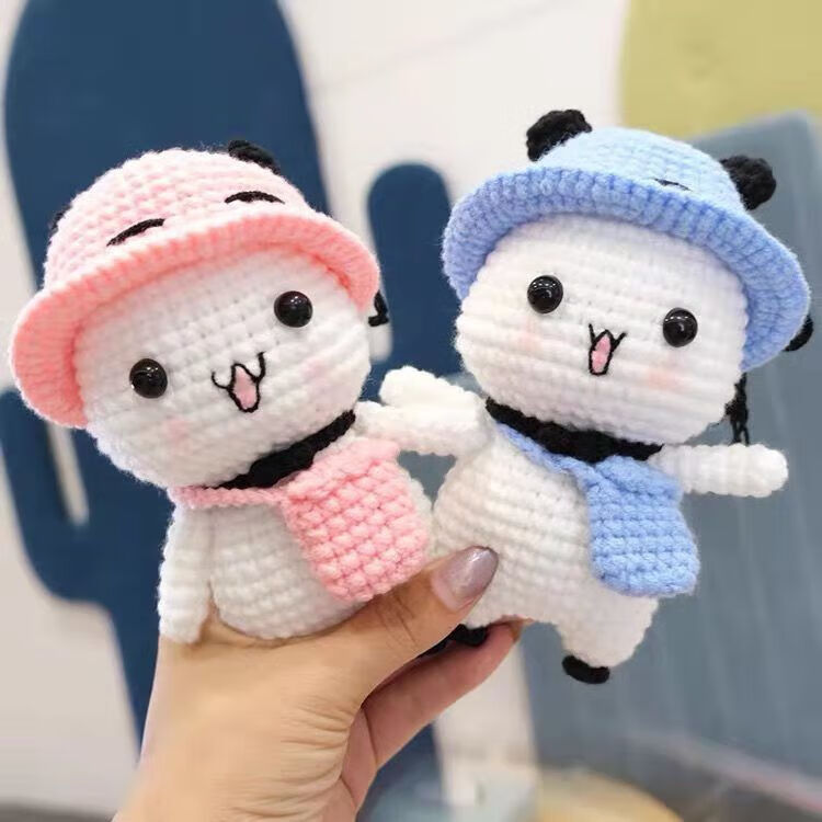 勾线手工编织毛线diy材料包手工编织制作勾线玩偶挂件毛线娃娃 粉+蓝猫组合材料包