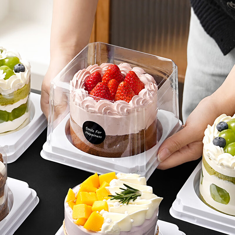 十色生活4英寸蛋糕盒小西点包装盒2甜品打包盒子慕斯杯围边切块蛋糕卷烘焙 【10套】4英寸圆底包装盒