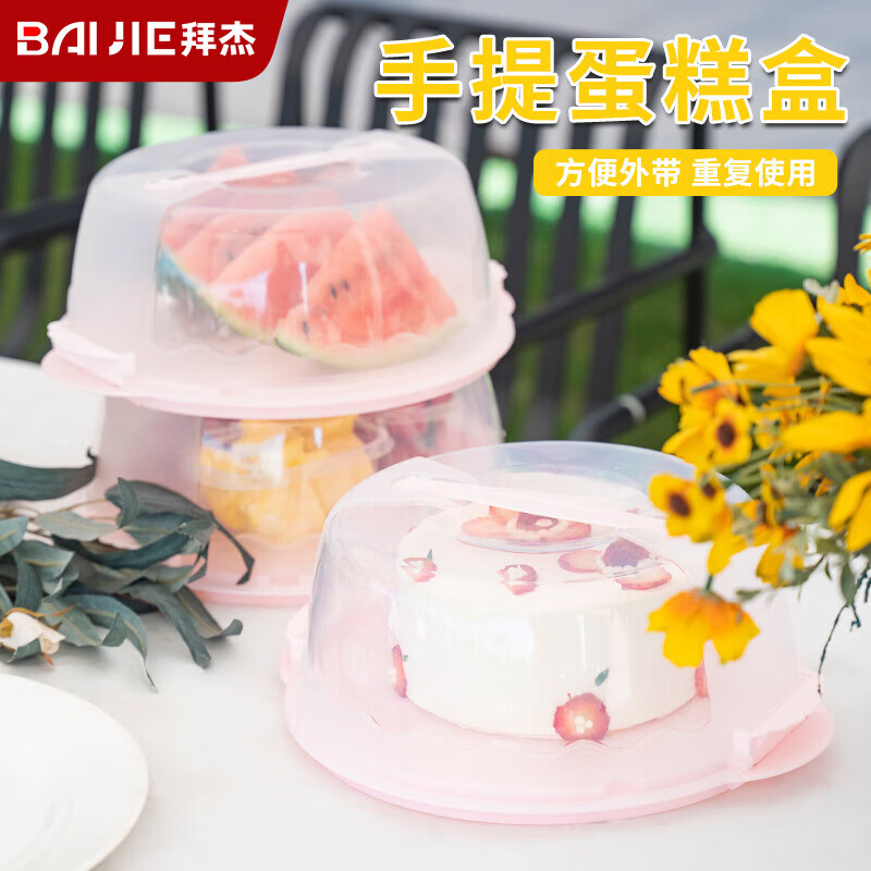 拜杰生日蛋糕包装盒8寸可重复家用蛋糕包装盒手提打包盒水果保存盒