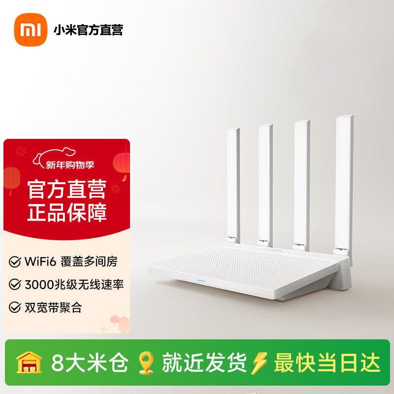 小米(MI)AX3000T路由器5G双频WIFI6 多宽带聚合 3000M无线速率 千兆5G家用路由 Xiaomi AX3000T