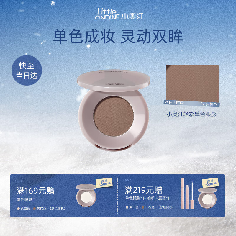 小奥汀(littleondine)轻彩单色眼影02灰棕哑光大地色 持久易上色 生日礼物送女友