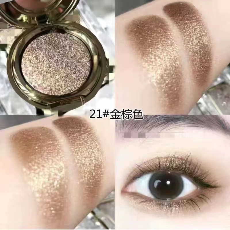 【高级日常】单色眼影珠光深紫大地色钻石黑一闪到底闪粉眼影盘QJ 【热销组合】-21#金棕色+18#烟薰紫棕