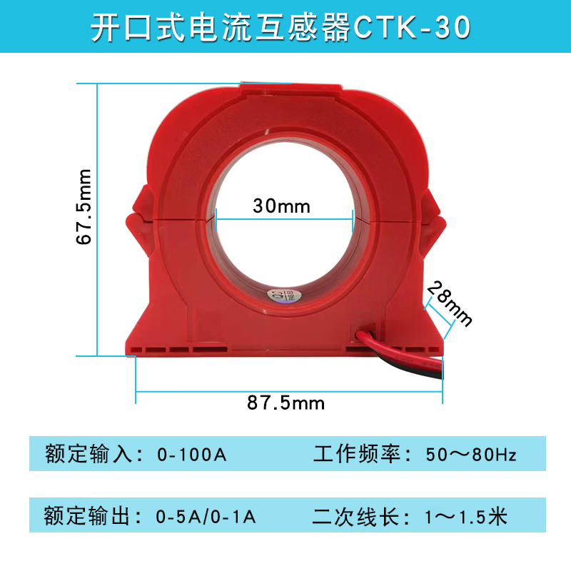 厚德开口式电流互感器厚德HDELEM100-1500/5A开启式CTK25385080开合式 100A/5A CTK-25(孔直径25mm)